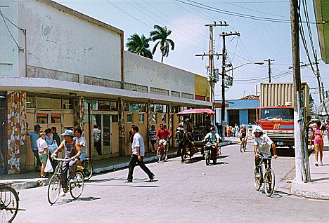 This is the corner of Calzada Avenue and Real Street: Coming into Calzada, on the left you can see the building that used to house the pre-Castro bakery called "La Vencedora", with the entrance to the old "Esso" gas station visible at the end of the street. |