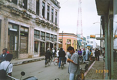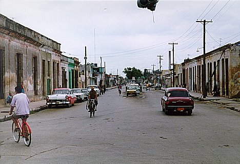 On Real street, looking toward the fort, from between Calzada and Coronel Verdugo: On the right we can see the Cárdenas Liceum building and, on the left, the Trinitarian Fathers school. If you turn right at the corner you will be heading straight toward Varadero Beach. |